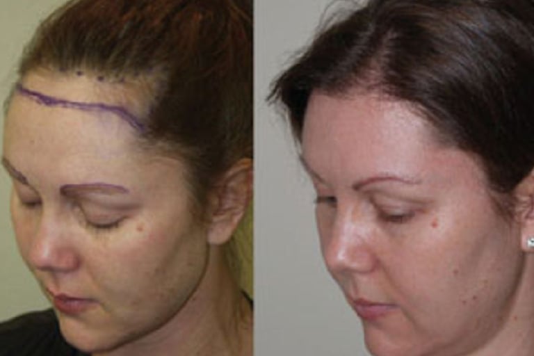 The surgery typically involves removing a strip of scalp tissue from the forehead and advancing the hairline forward to reduce the amount of visible forehead and create a more natural-looking hairline. The harvested scalp tissue is then meticulously sutured into place, and the incisions are closed with sutures or staples to ensure optimal healing and minimal scarring.