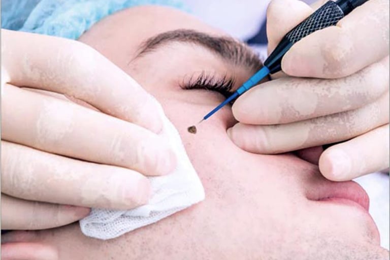 Laser Removal: Laser therapy uses focused laser energy to target and destroy the pigment cells in the mole, causing it to fade over time. Laser removal is often used for flat or pigmented moles.
